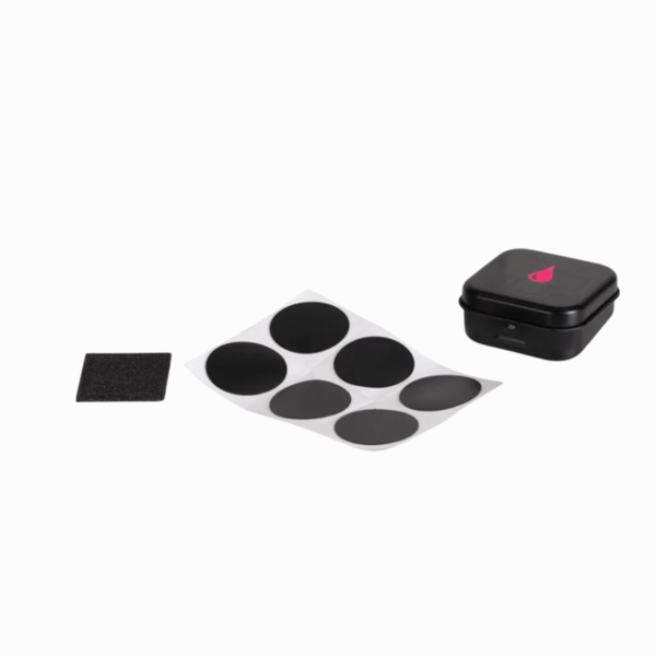 Cuando ocurra un pinchazo, ¡Querrás tener listos estos parches para pinchazos de tamaño de viaje! Hay 6 parches autoadhesivos y papel de lija para